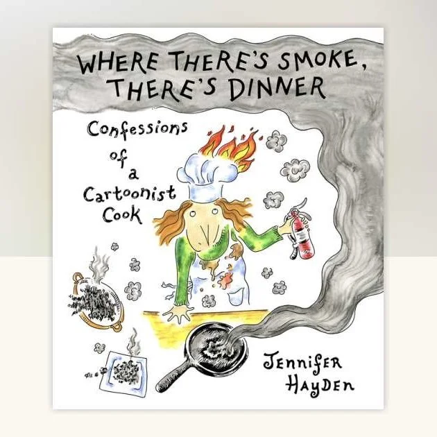Where There’s Smoke, There’s Dinner by Jennifer Hayden is a hand-drawn memoir peppered with tongue-in-cheek (but potentially technically edible if you squint) recipes about how much she hates cooking. Every single night. In perpetuity.